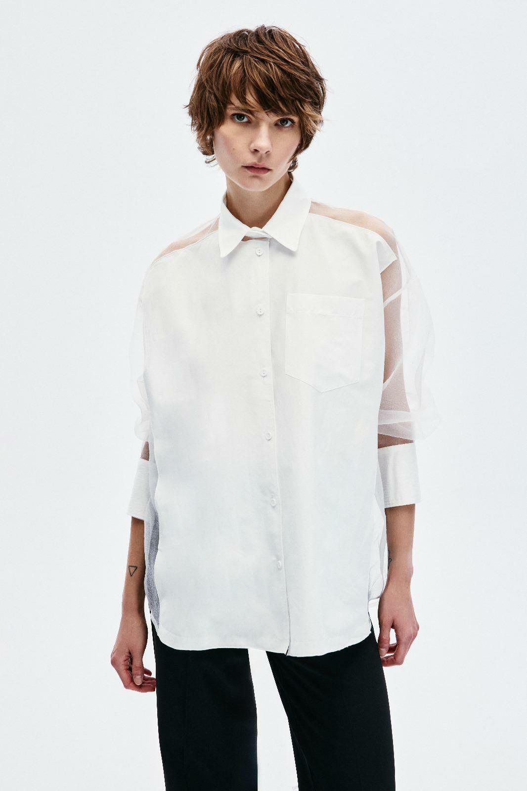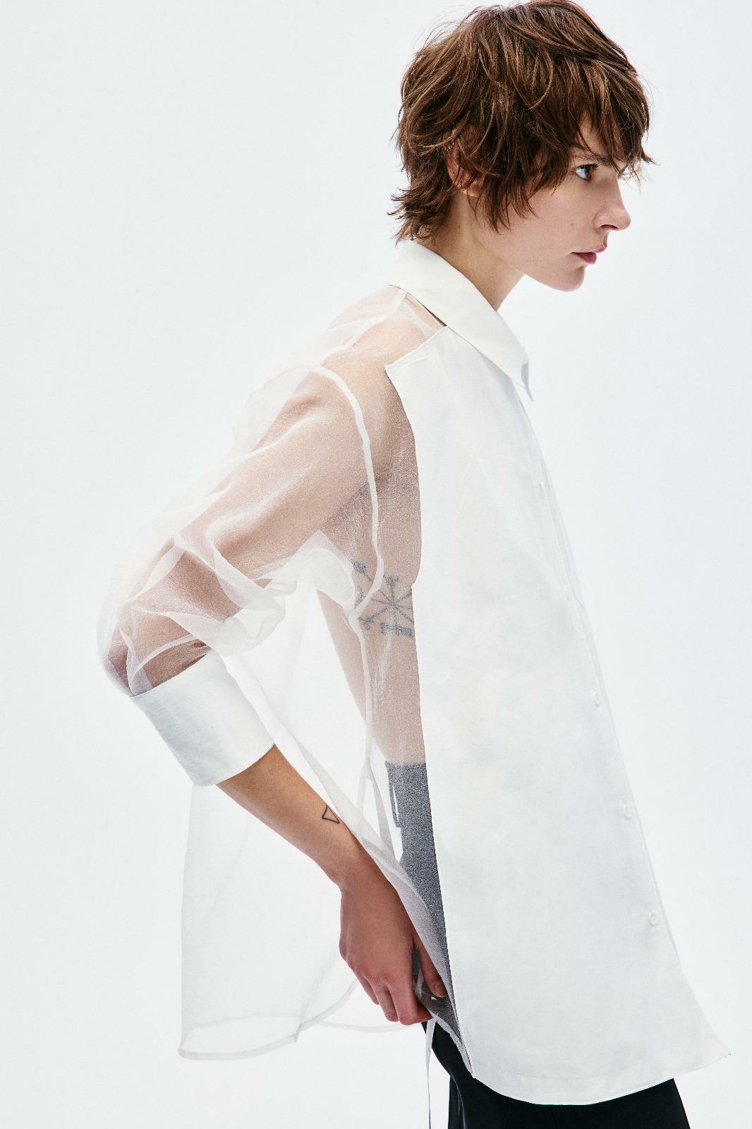 HomeWomen's Fashion Sheer Back Organza Long Sleeve Shirt Casual Work WearWomen's Fashion Sheer Back Organza Long Sleeve Shirt Casual Work WearDescriptionFashionable shirtElegant and comfortable shirtFabric: Organza & Cottonlength: 30 inchColor: Black / WhiteSIZE3638404244colorWhiteBlack